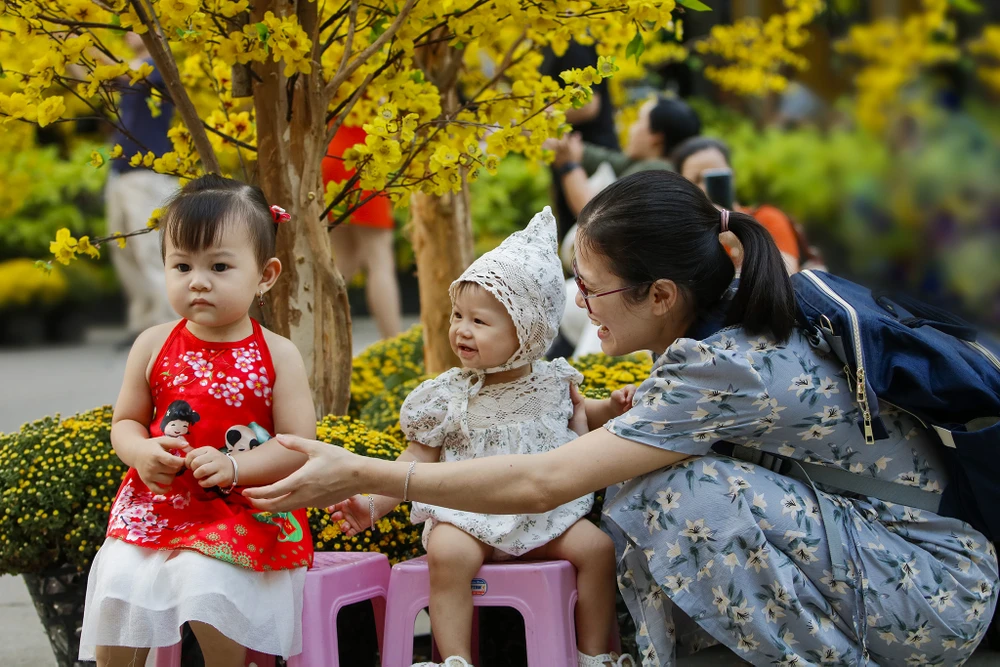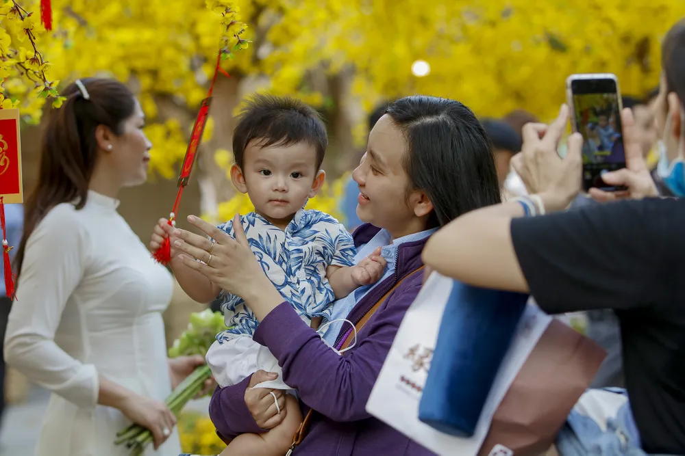Đây là lần đầu tiên mình cùng các con đến phố ông đồ chụp ảnh, mình không ngờ nơi đây lại rực rỡ đến vậy" - Chị Thanh Trà (quận 5) chia sẻ.