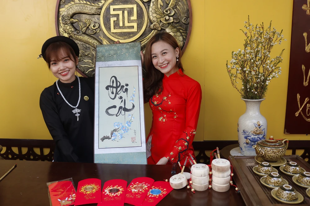 Khai mạc ngày 28-1, vườn mai và phố ông đồ tại Nhà Văn hóa Thanh Niên nằm trong khuôn khổ của Lễ hội Tết Việt là điểm hẹn để mọi người cùng gặp gỡ, sẻ chia, chụp ảnh trong dịp Tết.