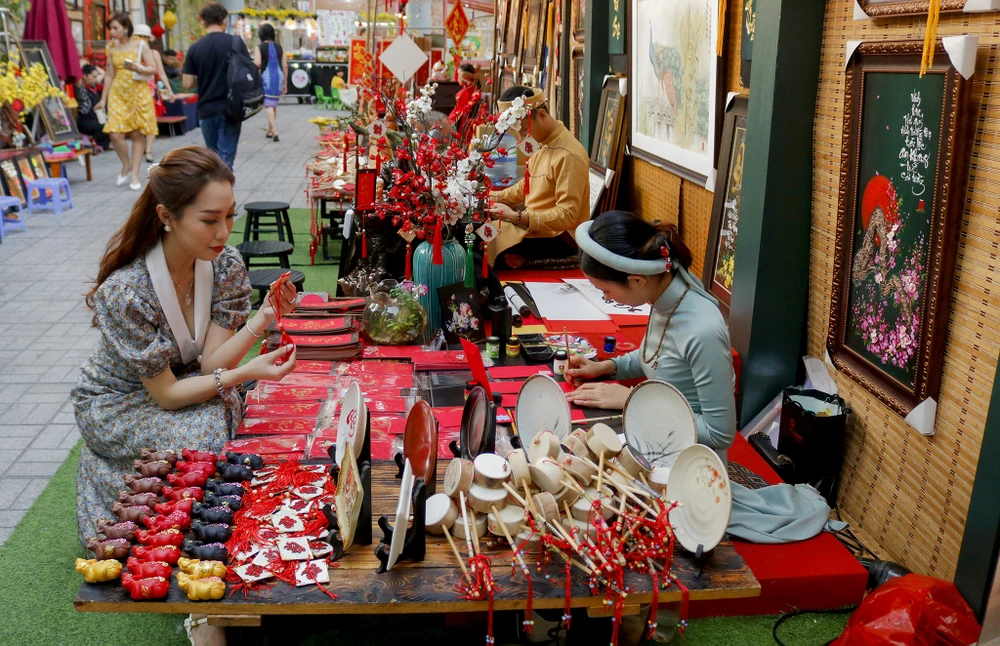 Bên cạnh vườn mai, phố ông đồ là một trong những điểm nhấn quan trọng của Lễ hội Tết Việt.