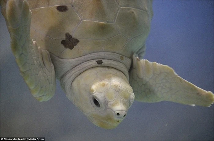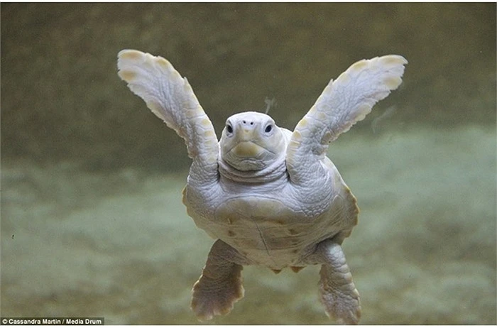 Hình thù mang một màu trắng khác biệt, nhưng không vì thế mà rùa Alba bị cô lập trong thế giới loài của mình.