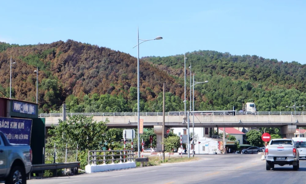 Rừng thông sau khi cháy, nhìn từ quốc lộ 1A. Ảnh: Đắc Lam