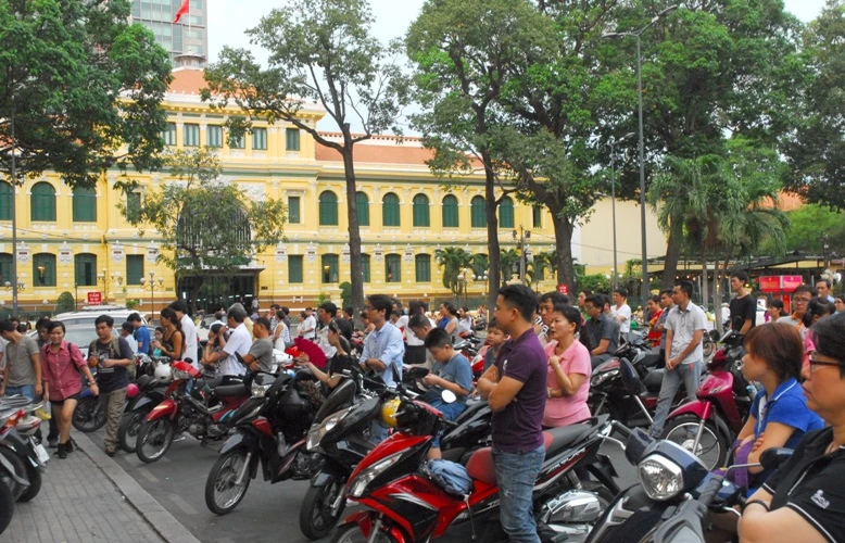 Nhiều người chụp ảnh lưu niệm