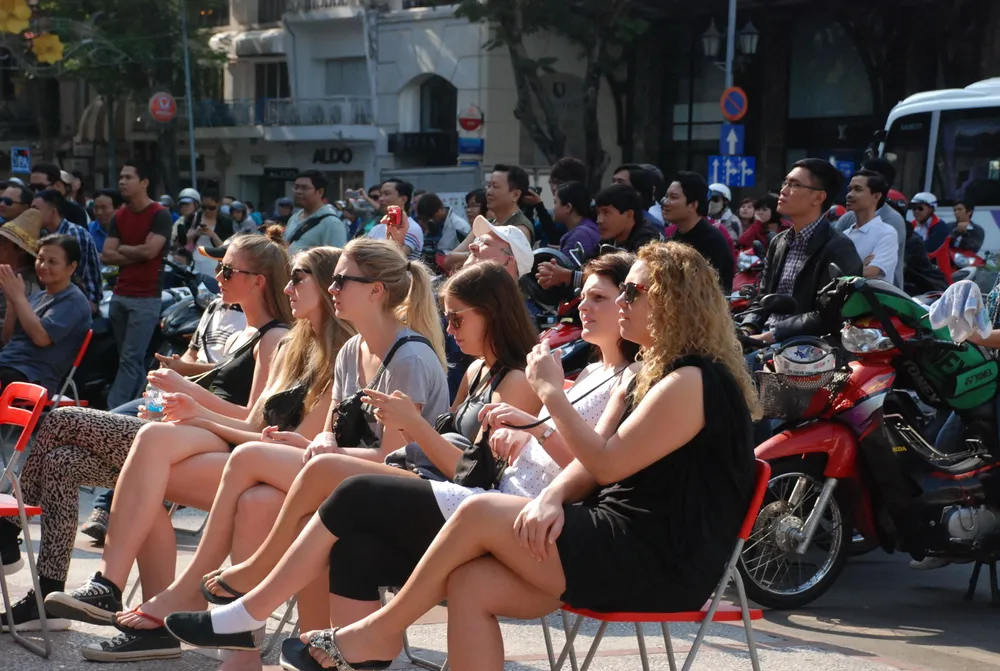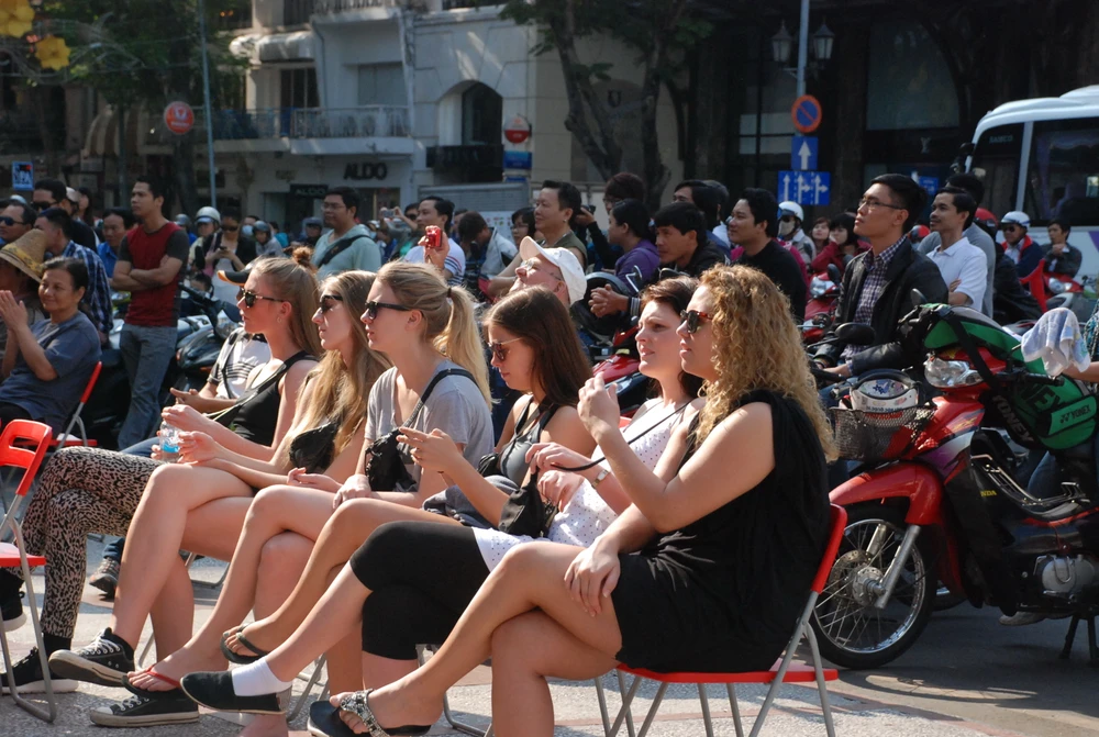 Tại khu vực Công viên Lam Sơn, các trục đường Nguyễn Huệ, Đồng Khởi, Lê Lợi và khu vực xung quanh trụ sở UBND TP cũng có nhiều đoàn khách nước ngoài đến tham quan và chụp ảnh.