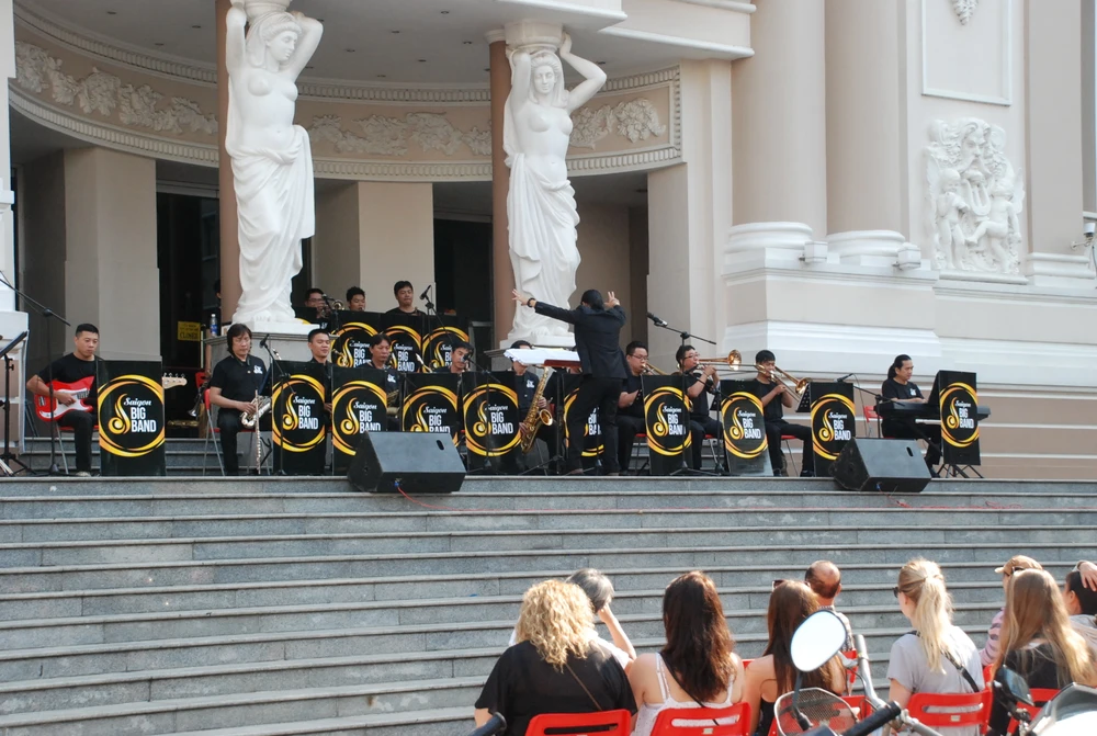 Người dân TP và du khách thưởng thức âm nhạc trước khu vực Nhà hát TP