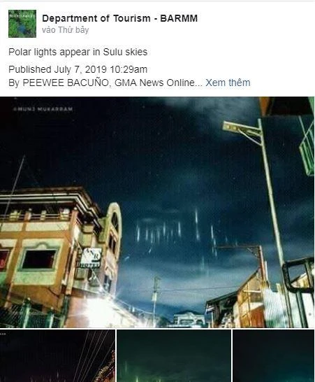 Những bức ảnh được tải lên bởi người dùng Stewj Sulaiman và Amarkhan Jidara đăng trên Facebook, với nhiều góc chụp khác nhau. Đây là lần thứ hai hiện tượng thiên thể xuất hiện trên bầu trời Sulu trong năm nay, theo các cư dân. Jidara cho biết những cột ánh sáng hiện ra trên bầu trời Sulu từ 20-30 phút.