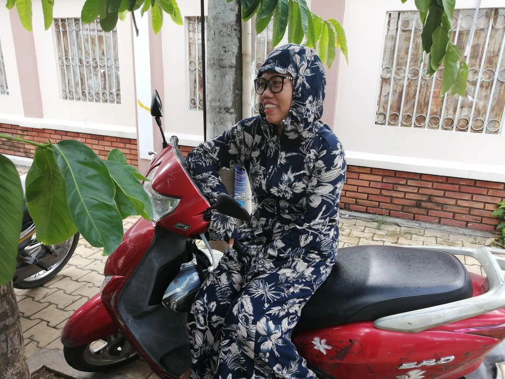 Tại TP.HCM, khoảng 13 giờ, trời cũng nắng chói chang, rất nhiều phụ huynh đưa con đến trường đều phải trang bị trang phục như ninja.