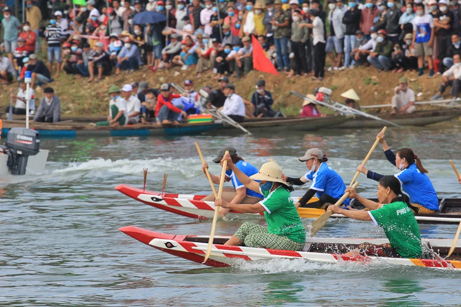 Giải đua thuyền thu hút đông đảo người dân đến theo dõi.