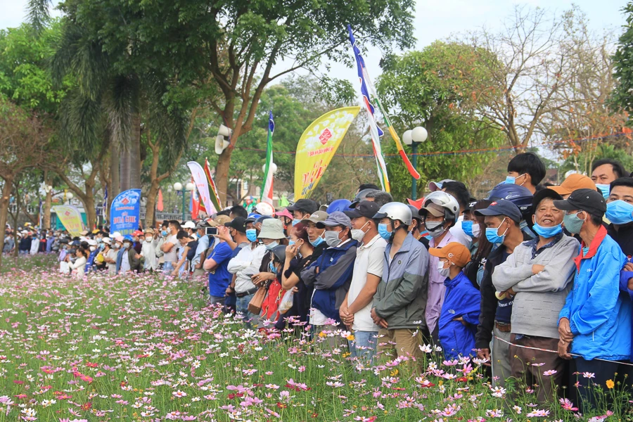 Đông đảo người dân theo dõi và cổ vũ các đội đua.