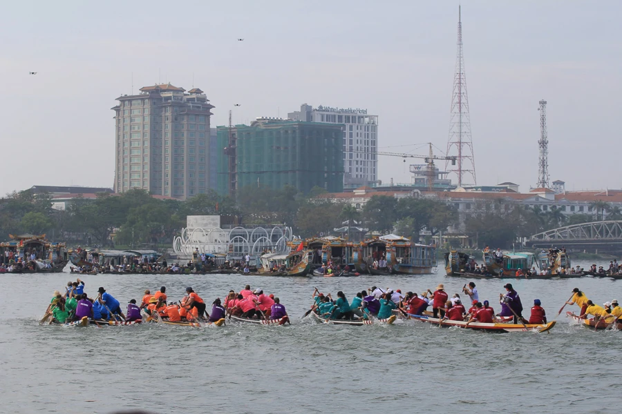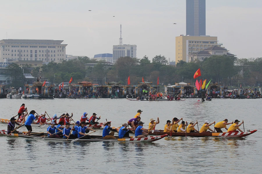 Giải Đua ghe diễn ra lúc 6h30 trên sông Hương và sông Đông Ba, tại khu vực Công viên Trịnh Công Sơn - phường Gia Hội.