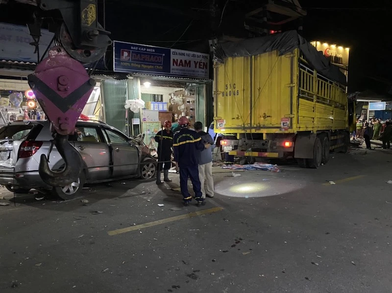 | Danh tính các nạn nhân Ba người chết gồm: Đinh Văn Trăn (42 tuổi, ngụ Sơn Thành, huyện Sơn Hà, Quảng Ngãi), một người chưa rõ lai lịch và tài xế xe ô tô. |
