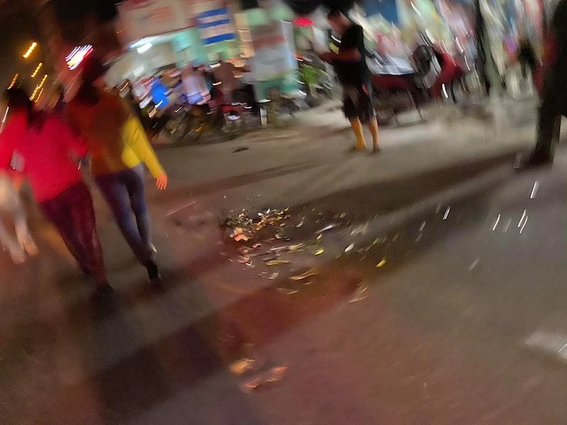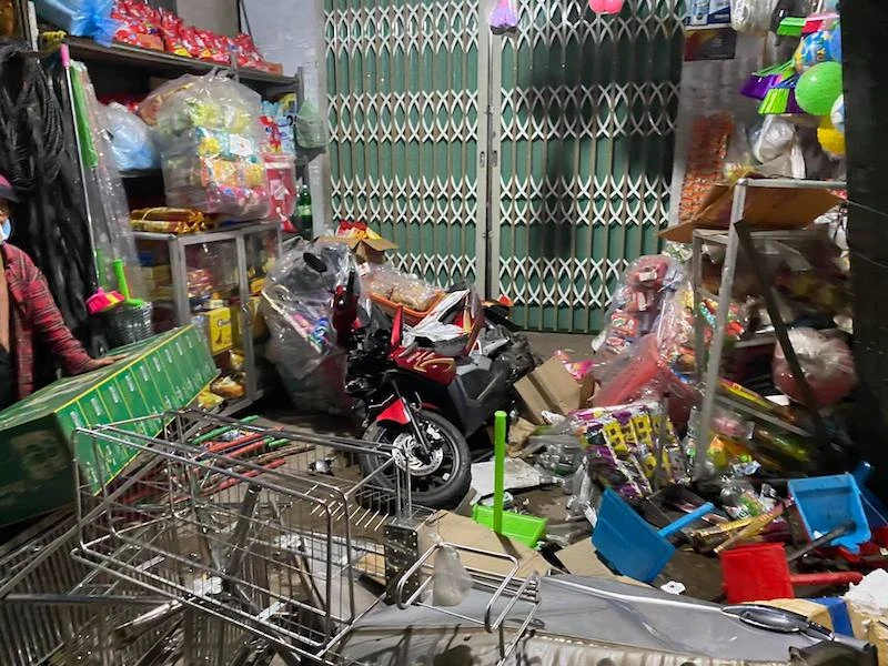 Nhiều vật bị bể thành nhiều mảnh rơi xuống đường.