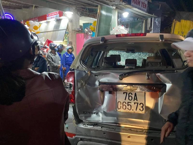 Xe tải 51C – 64046 lưu thông hướng Đông – Tây va chạm với ô tô bảy chỗ 76A – 06573 chạy hướng ngược lại. Sau va chạm, xe tải nổ lốp mất lái tiếp tục va chạm với một số người đi đường.