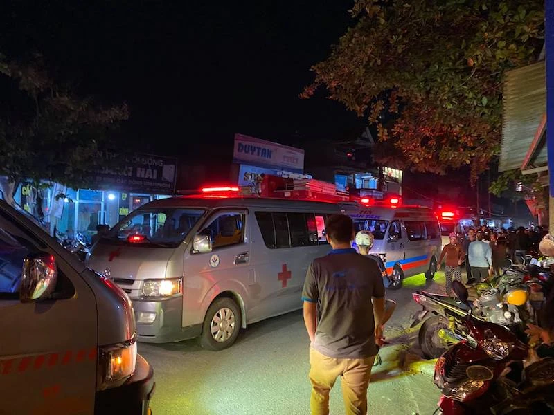 Ngành Y tế đã huy động nhều xe cứu thương đến hiện trường.