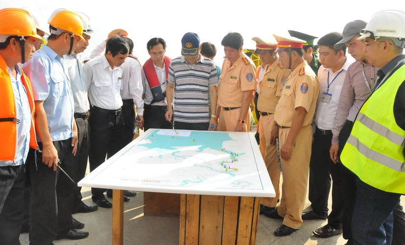 Ông Tất Thành Cang, Giám đốc Sở GTVT xem xét lại việc bố trí các chốt trên toàn tuyến. Ảnh: MP