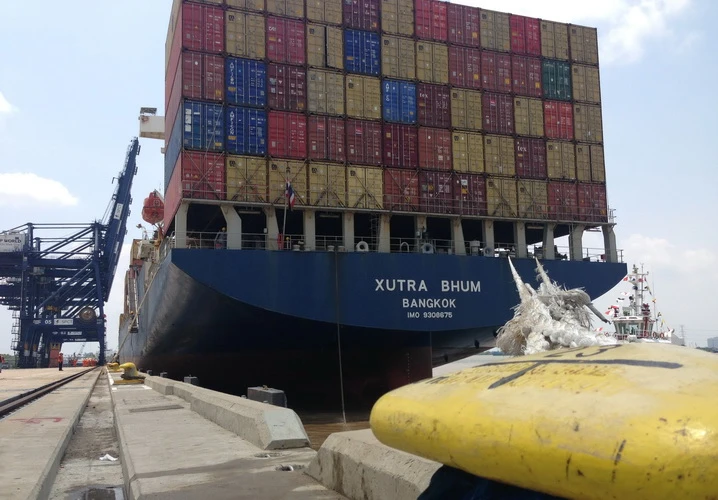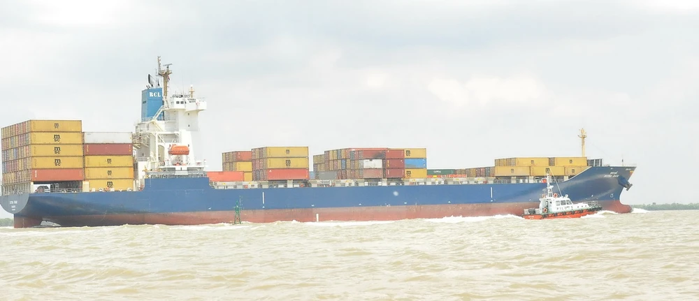 Tàu Xutra Bhum tải trọng trên 30.000 tấn lần đầu tiên đã lưu thông an toàn trên luồng Soài Rạp và cập vào cảng SPCT ở khu công nghiệp Hiệp Phước (huyện Nhà Bè, TP.HCM). Ảnh: MP