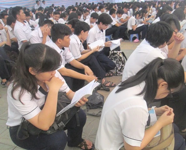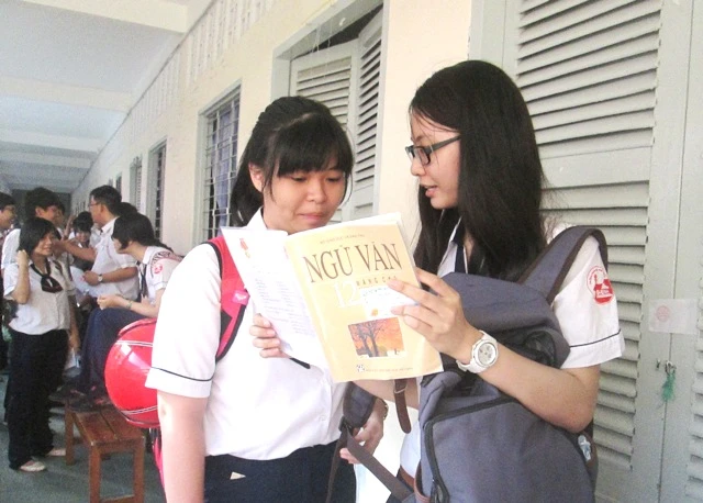 Trao đổi bài trước khi vào phòng thi.