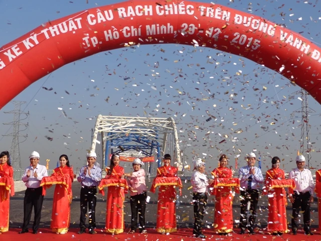 Sáng 29-12, Sở GTVT tổ chức thông xe kỹ thuật cầu Rạch Chiếc mới trên đường vành đai Đông (là phân đoạn của tuyến vành đai 2, nằm ở phía đông bờ sông Sài Gòn).