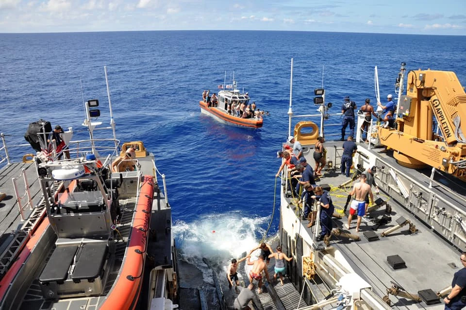 Những hình ảnh từ sự kiện này được lực lượng bảo vệ bờ biển trên tàu USCGC Kimball đưa lên Facebook: