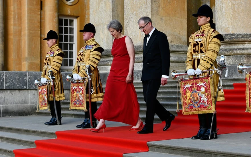 Thủ tướng Anh Theresa May và chồng Philip đón chào Tổng thống Donald Trump tại cung điện Blenheim