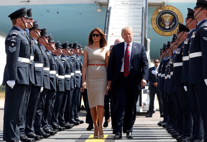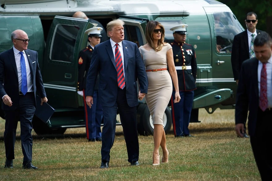 Sau khi nghỉ ngơi, tổng thống Mỹ và phu nhân sẵn sàng đến dự buổi gặp gỡ với Thủ tướng Anh Theresa May. Ảnh: AFP