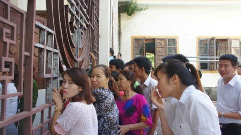 Rất đông người dân đến tham dự phiên tòa