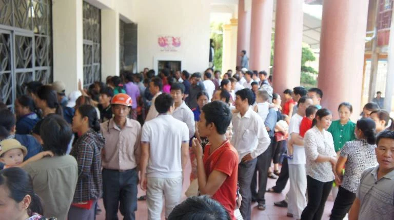 Hội trường khá rộng nhưng cũng không đủ chỗ cho mọi người đến dự tòa