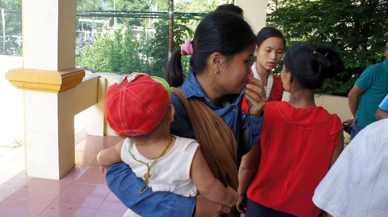 Chị Nguyệt vợ bị cáo khóc lóc đòi vào thăm chồng "cho con nhìn mặt cha"