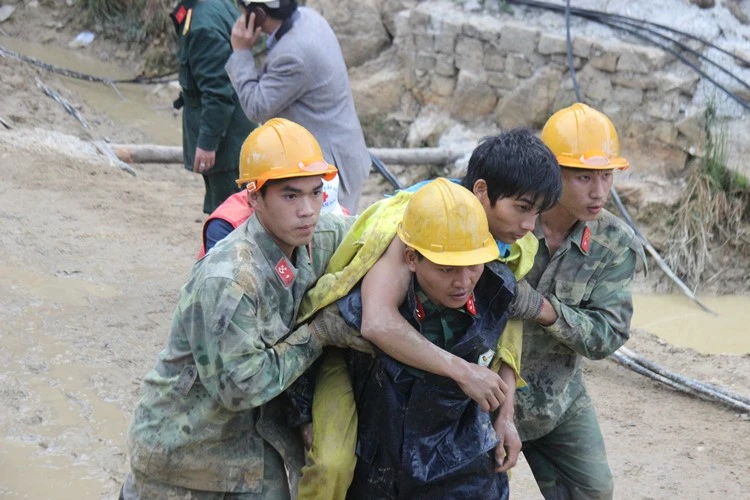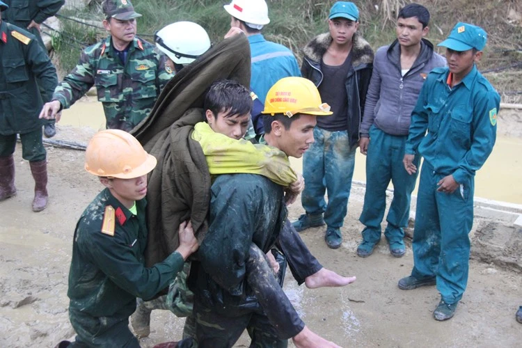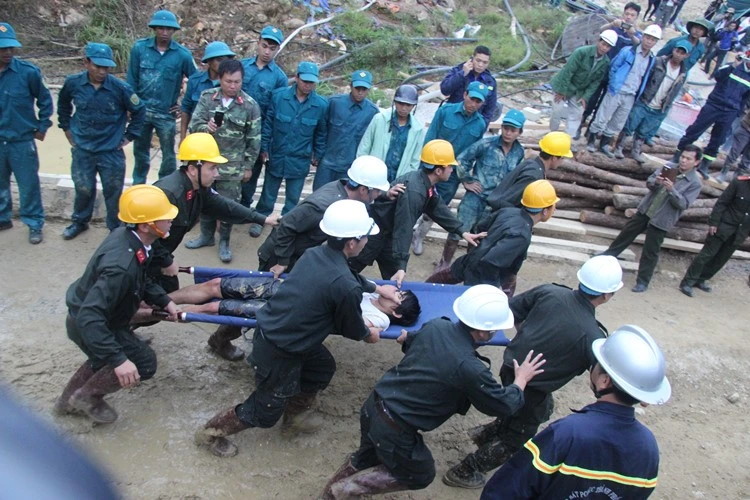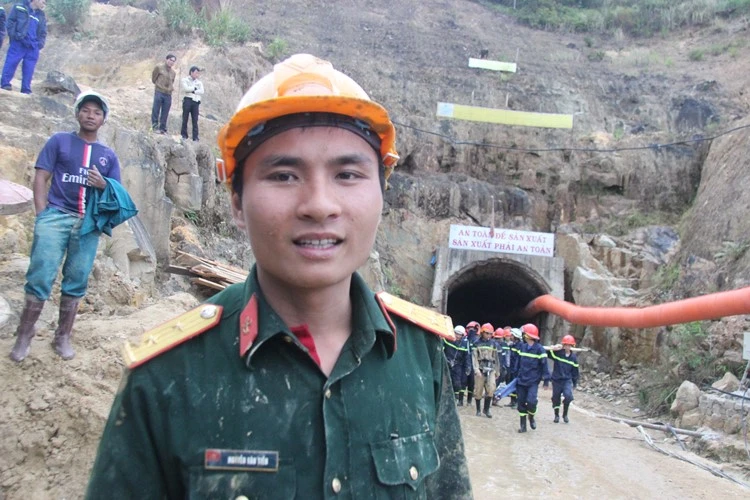 Trung úy Nguyễn Văn Tiến và các chiến sĩ tại lữ đoàn 293 - Binh Chủng Công Binh thuộc Bộ Quốc Phòng trực tiếp băng hầm giải cứu nạn nhân mừng rỡ khi ra ngoài hầm.