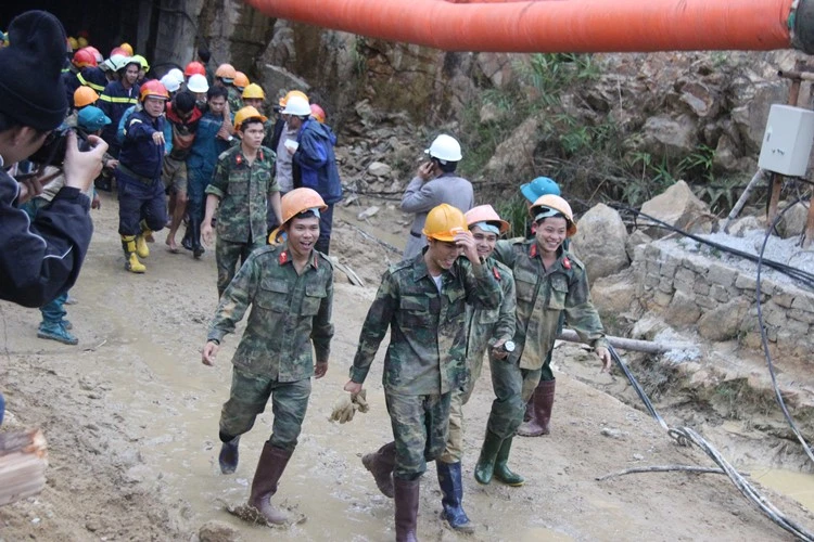 Niềm vui vỡ òa của lính công binh bước ra khỏi hầm khi chính tay họ cứu 12 sinh mạng ra ngoài một cách an toàn.