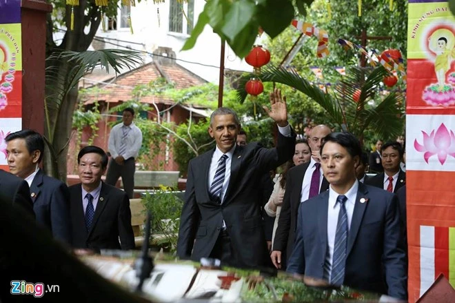 Ông Obama cúi đầu chào nhà sư chùa Phước Hải - Ngọc Hoàng - Ảnh: Viễn Sự