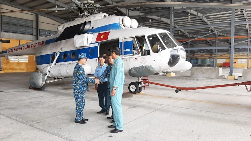 Chuyến trực thăng đầu tiên đã đưa hàng cứu trợ đến xã Phước Thành trong sáng 1-11. Ảnh: TD