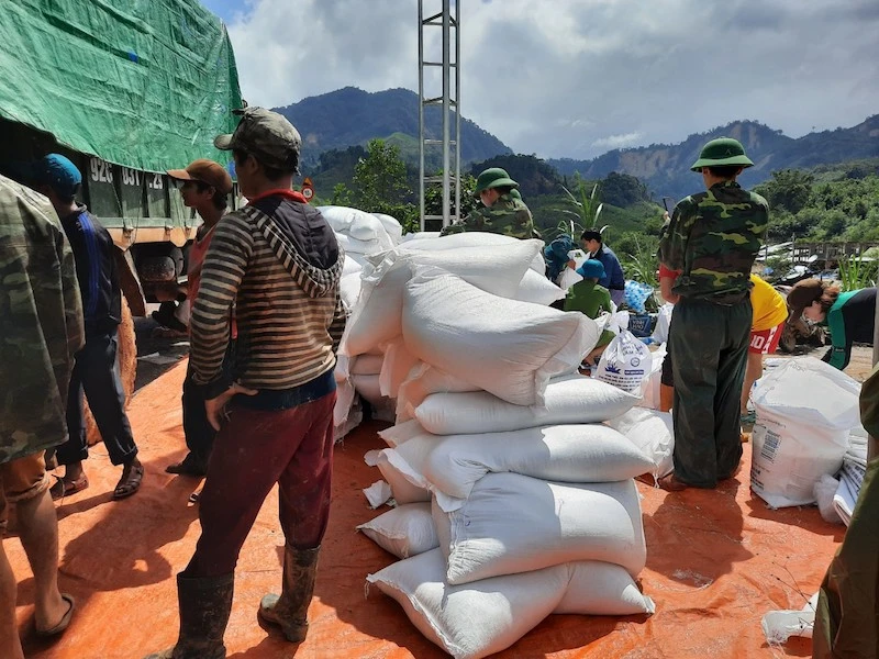 Lương thực, thực phẩm tập kết tại xã Phước Công. Ảnh: AK