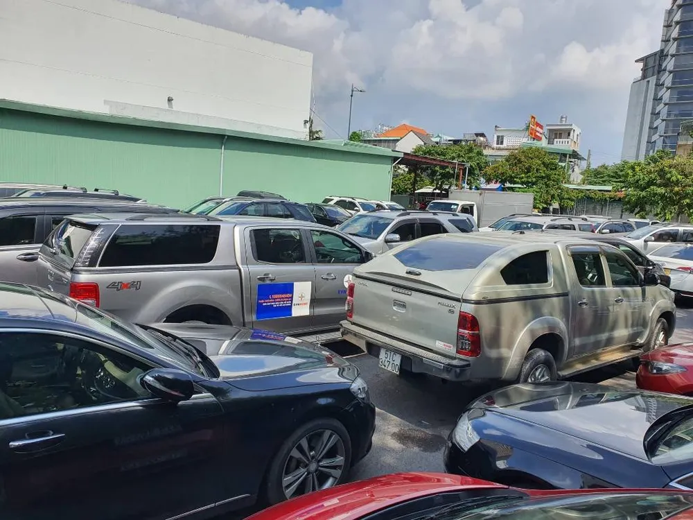 Tại 1 số Trung tâm Đăng kiểm, hầu hết các cửa ra, vào đều có xe đậu kín mít, xếp hàng dài để chờ được vào cửa. Phía bên trong, ở khu vực bãi đậu xe cũng kín chỗ đậu.