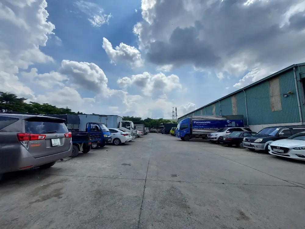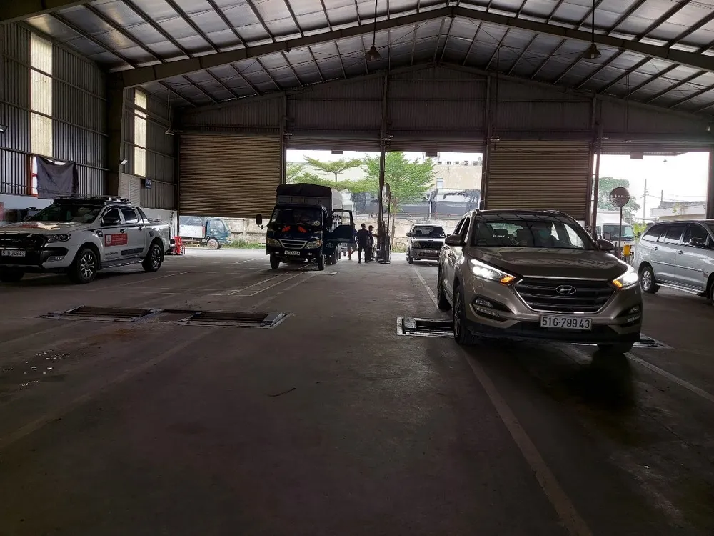 Bãi đỗ xe bên trong trung tâm đăng kiểm kín xe.