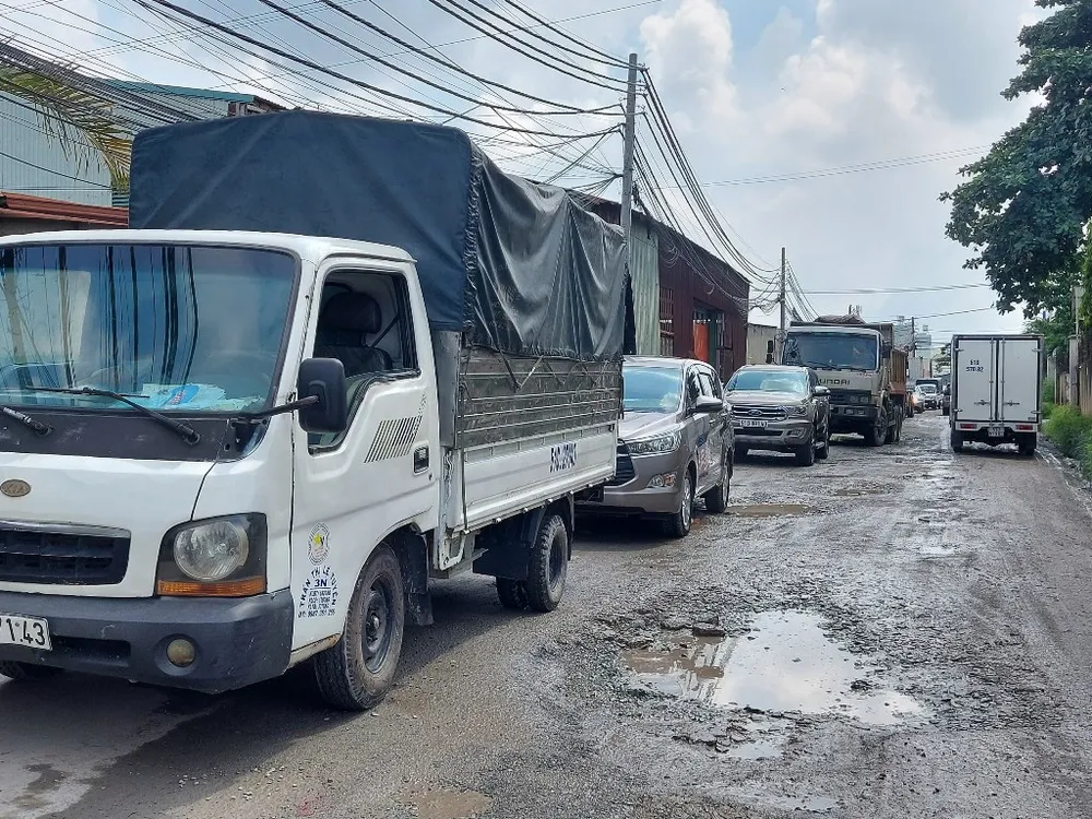 Xe tải, ô tô cá nhân đậu hàng dài từ quốc lộ 1A để chờ đến lượt đăng kiểm.