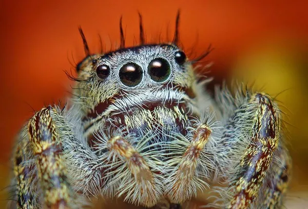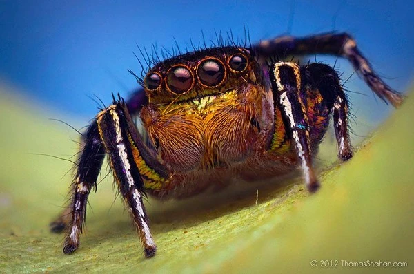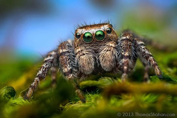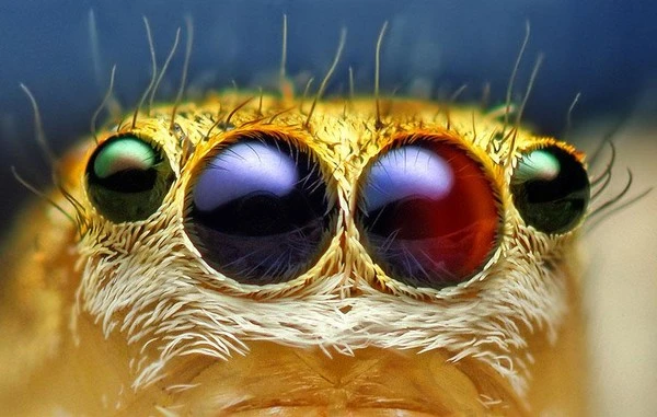 Mắt nhện nhảy có cấu tạo đặc biệt giúp chúng nhìn được màu sắc và chính xác như con người.