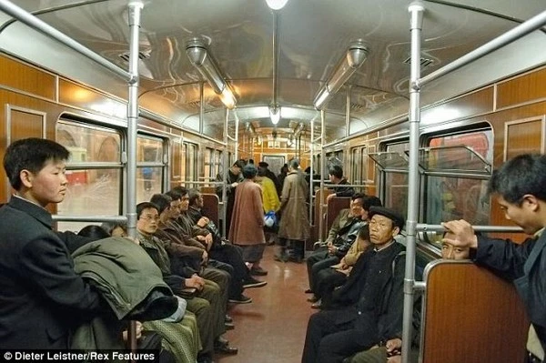 Nhiếp ảnh gia cho biết ông đã dày công nghiên cứu và tìm ra những địa điểm tương đồng tại 2 quốc gia để giúp người xem có thể cảm nhận rõ nét nhất về sự khác biệt qua mỗi cặp ảnh so sánh. Tuyến tàu điện ngầm ở thủ đô Bình Nhưỡng (Triều Tiên) với những hành khách vô cùng nghiêm túc và có chút buồn bã.