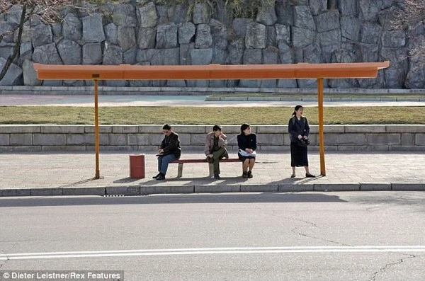 Người dân Bình Nhưỡng chờ xe buýt.