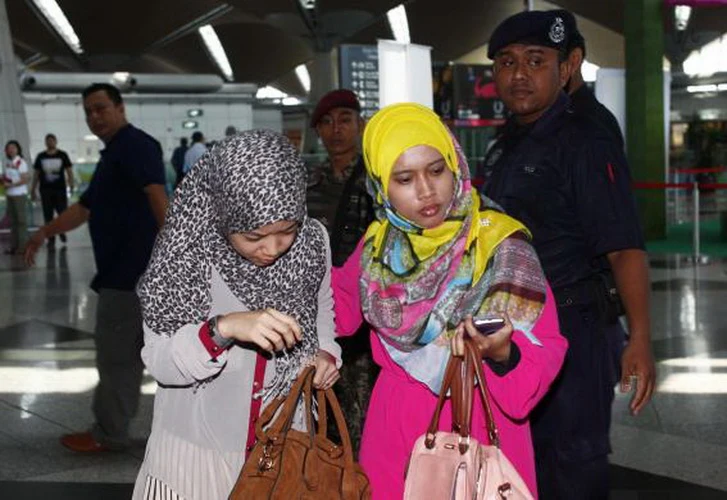 Người thân của hành khách trên chuyến bay mất tích đi vào khu vực chờ đợi tại sân bay quốc tế Kuala Lumpur tại Sepang. REUTERS / Samsul Said