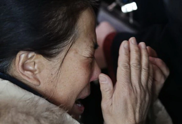 Thân nhân một hành khách trên máy bay Malaysia Airlines MH370 khóc tại sân bay quốc tế Thủ đô Bắc Kinh ở Bắc Kinh 8 tháng 3 năm 2014. REUTERS / Kim Kyung Hoon