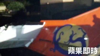 Logo của hãng hàng không TransAsia, trên mãnh vỡ còn sót lại. (Nguồn AppleDaily)