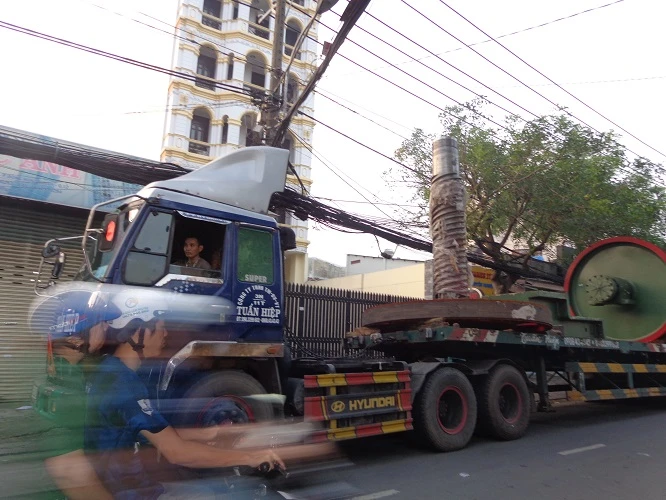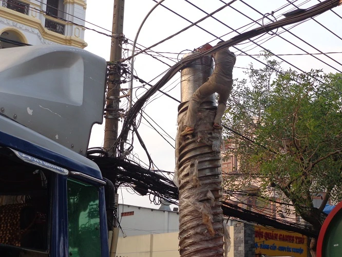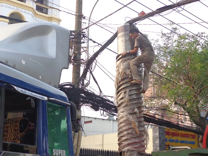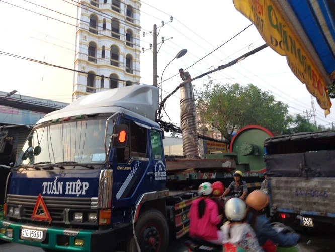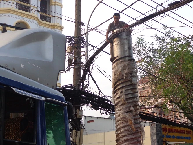 Chùm ảnh: Xe siêu cao “làm xiếc” với dây điện