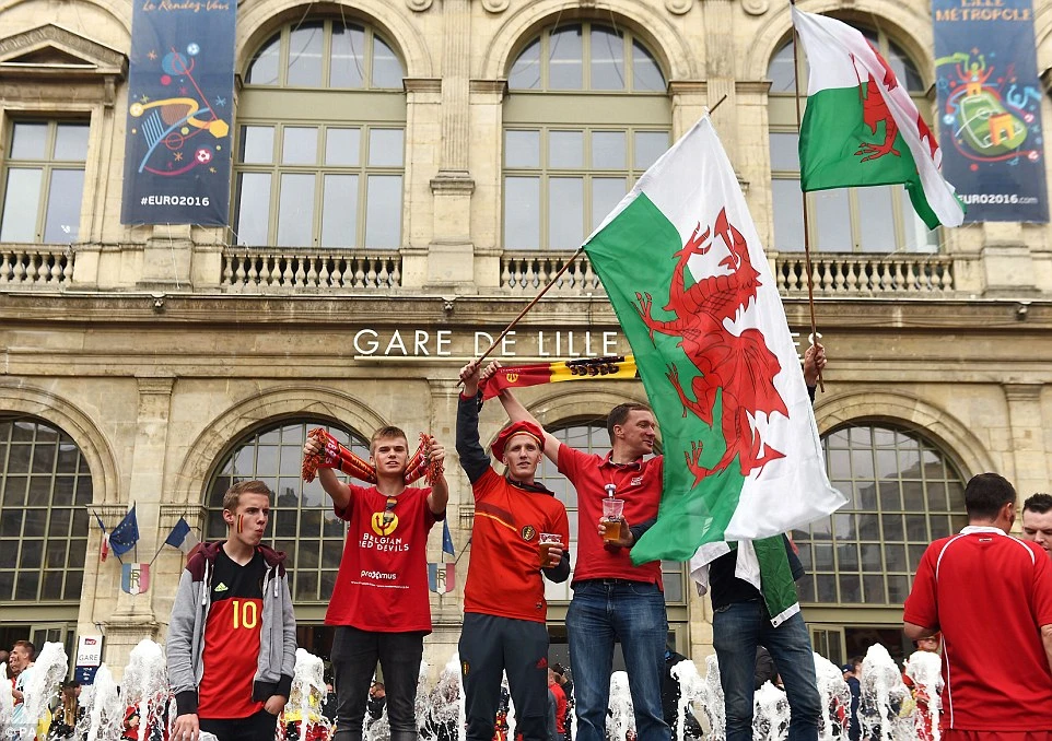 Đội tuyển xứ Wales vào trận gặp Bỉ trong trận tứ kết với sự ủng hộ của hơn 10.000 khán giả từ quê nhà sang Pháp ủng hộ.