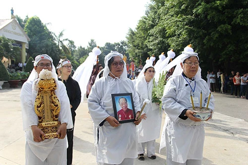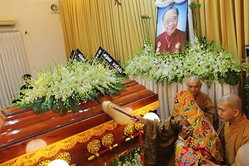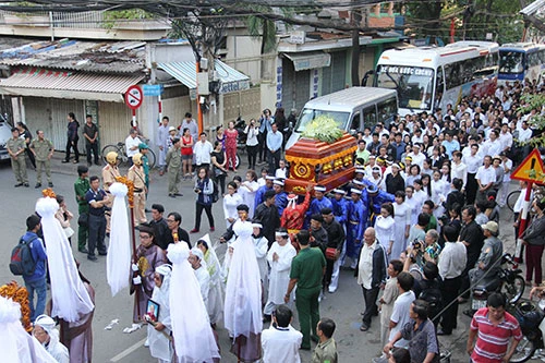 Từ 6 giờ sáng, người thân cùng đông đảo bạn bè đã đến để làm lễ động quan. Sau khi hoàn tất nghi lễ tại tư gia, linh cữu của GS được đưa về Nghĩa trang hoa viên Chánh Phú Hòa (Huyện Bến Cát, Bình Dương). Đến hơn 9 giờ, linh cửu của GS đã an nghỉ.