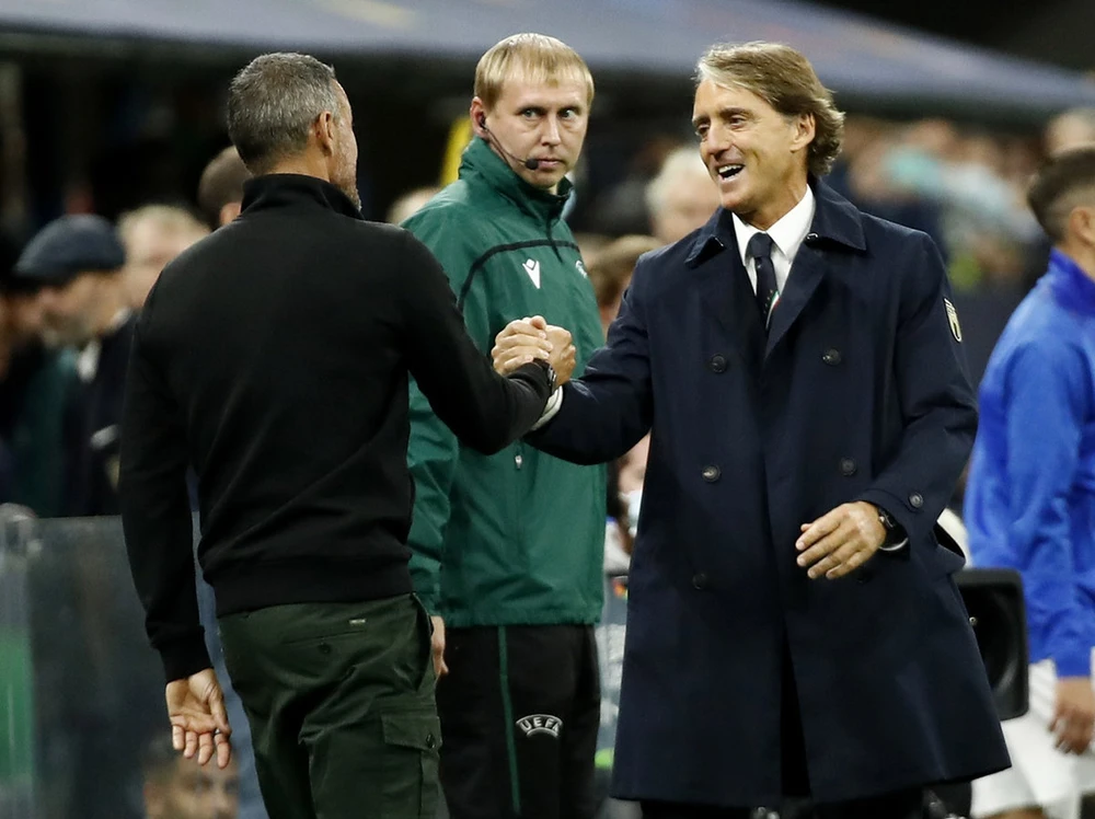 Mancino khâm phục đồng nghiệp Enrique sau trận đấu.