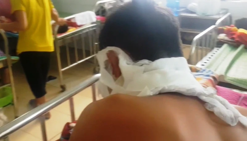 Cầu thủ U-14 bị bỏng, đang được điều trị tại bệnh viện ở TP Vinh.