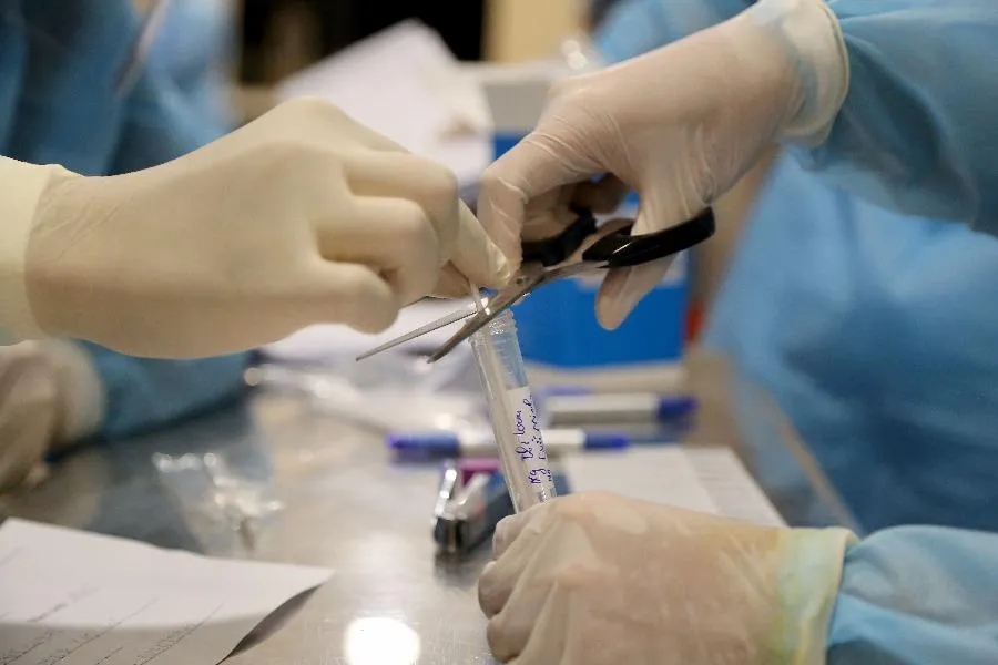 Cơ quan y tế đang lấy mẫu xét nghiệm COVID-19 liên quan chùm ca bệnh ở Hội thánh truyền giáo Phục hưng. Ảnh: HOÀNG GIANG