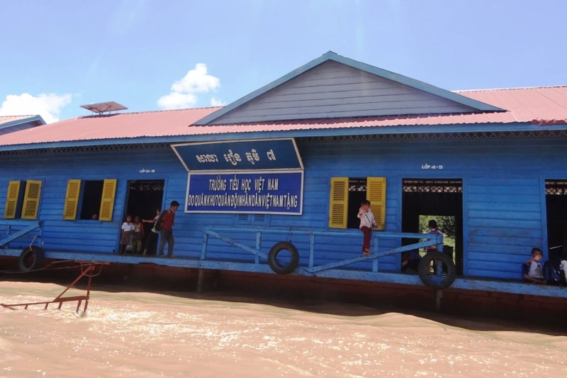 Tại Biển Hồ hiện có một trường tiểu học dành cho trẻ em người Việt. Trường có 413 học sinh, chia làm 10 lớp, từ lớp một đến lớp năm, dạy theo chương trình giáo dục của Việt Nam. Ảnh: TRUNG THANH