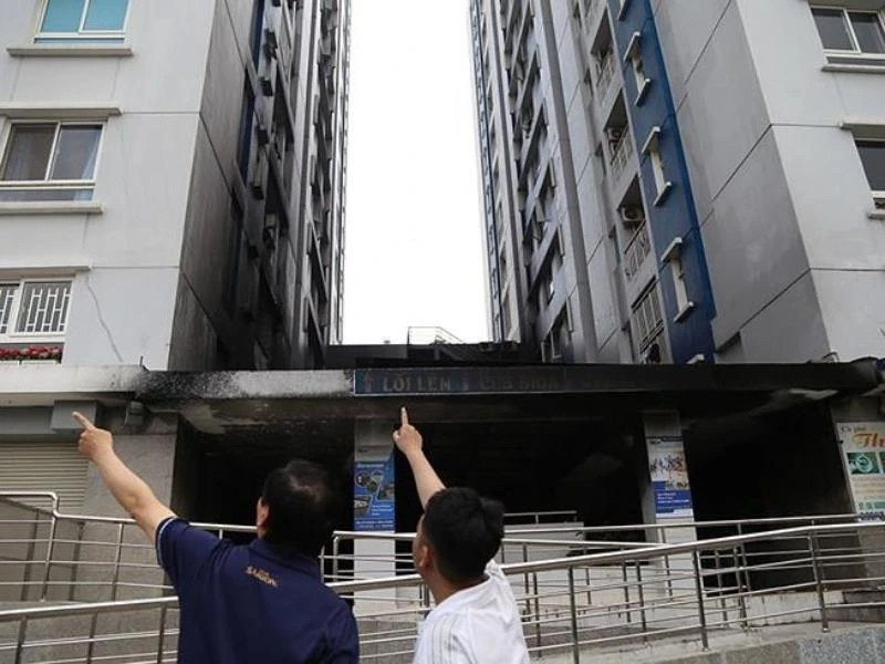 Chung cư Carina sau khi xảy ra vụ hỏa hoạn.