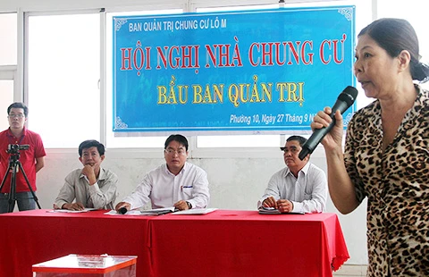 Theo đó, cư dân ở lô M chung cư Bàu Cát 2 (phường 10, quận Tân Bình, TP.HCM) đã bầu ra BQT mới, thay thế cho BQT cũ. Tại hội nghị, nhiều cư dân đề cập đến việc khắc phục hậu quả về việc thu chi sai của BQT nhiệm kỳ cũ (nhiệm kỳ 3) theo kết luận của Thanh tra Sở Xây dựng. Tuy vậy, ông Đoàn Văn Đủ - Chủ tịch UBND phường 10 cho rằng cuộc họp này chỉ thực hiện một nội dung duy nhất là bầu ra BQT mới. “Sau đó, BQT mới sẽ phối hợp với các đơn vị, cơ quan liên quan để giải quyết các vấn đề còn tồn tại” - ông Đủ nói.